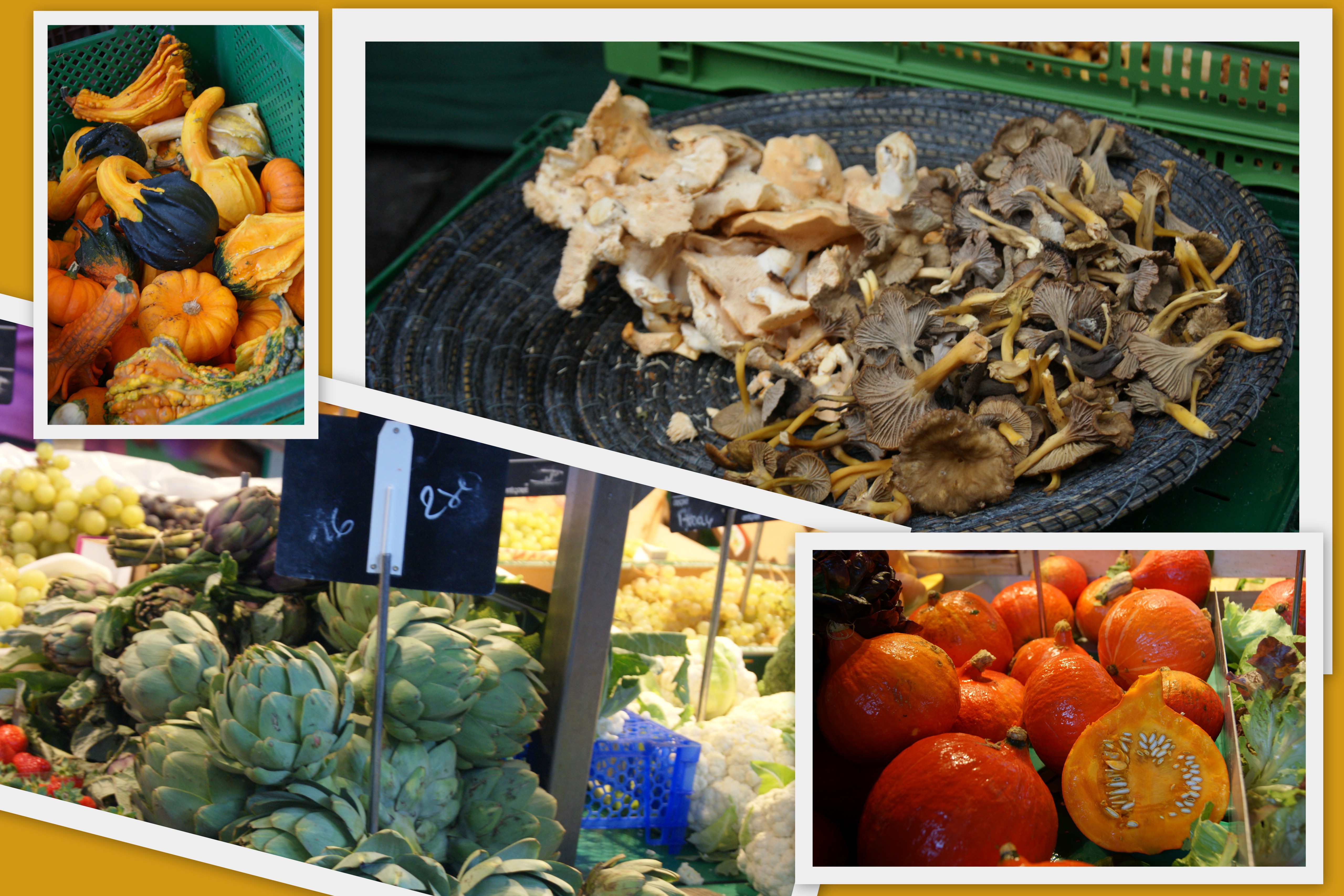 At the market, the tables are full of forest mushrooms, apples, artichokes and the abundant squash. Pumpkins, Hubbards, Butternuts. They overflow onto the roads, they are white, they are grey-blue, they are dark green, they are brown-orange. They are knobbly, they are smooth, they have scratches in their skin. They are whole, and they are cut open, their bright orange flesh are like beacons under a grey wet sky.